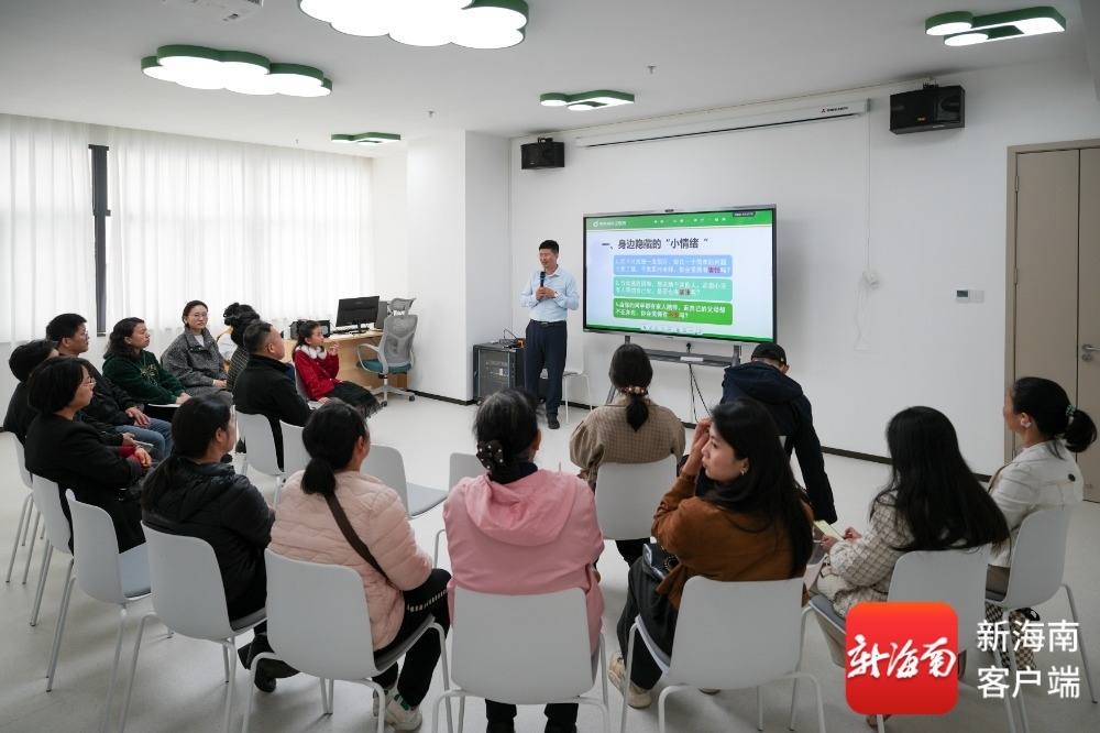 首场沙龙在海南省青少年心理健康医学中心举办,海南省青少年心理健康医学中心副主任医师,中国心理学会注册心理师,国家二级心理咨询师丛征途针对家长普遍关心的孩子厌学问题、沉迷手机难以管控等问题进行分析和讨论,从引导孩子应对学习压力,培育积极心态等层面指导亲子家庭共同应对孩子成长中常见的心理问题。