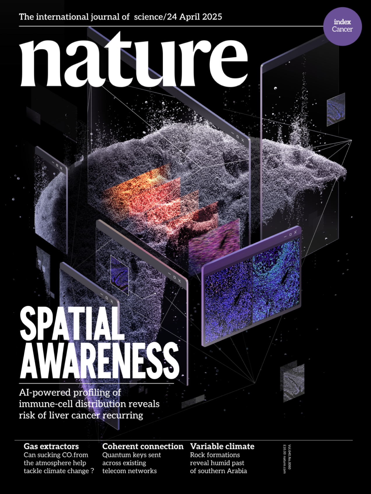 2025年3月13日,该项成果在线发表于《自然》,随后于4月24日被《自然》杂志选为当期封面文章。这是《自然》创刊156年来首篇以“计算肿瘤免疫学”为主题的封面文章,标志着一个全新学科方向的诞生。
