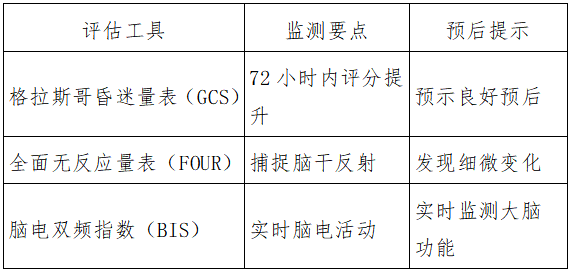 格拉斯哥昏迷量表(GCS):72小时内评分从5分升至8分,6个月良好预后概率达45%