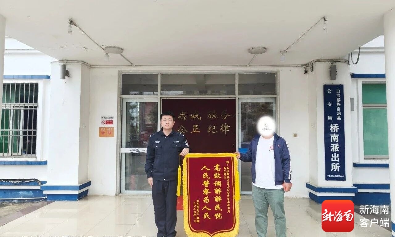 南海网、新海南客户端2月1日消息(记者 梁振文)“整整3年了,没想到这笔钱还能要回来,真是太感谢吴警官和派出所的同志们了!”近日,白沙黎族自治县公安局桥南派出所大院内暖意融融,居民范先生捧着一面印着“高效调解解民忧 人民警察为人民”的鲜红锦旗,紧紧握住民警吴凡的手,话里满是激动与感激。这面锦旗背后,藏着一场跨越3年的耐心调解,更是一段警民同心、终解心结的暖心故事。