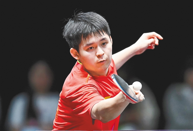 林诗栋在比赛中回球。新华社发