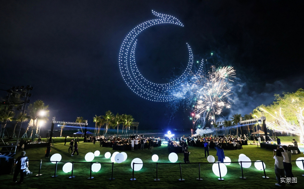 思想的激荡之后,是身心的全然沉浸。在凤鸣湖畔,一场高定“凤鸣山湖·星空盛宴”将山湖生活蓝图化为可感的现实。落日市集与微醺音乐会,开启了山湖间的闲适社交;特邀“一饭封神”冠军主厨团队奉上湖畔晚宴,演绎了舌尖上的风物诗篇;而贯穿夜晚的非遗“风火流星”表演、数百架无人机以夜空为幕,描绘出凤凰翱翔、湖居盛景的绚丽画面,璀璨烟花更是将这一夜的记忆定格为永恒,天地为舞台,为现场宾客呈现了一场超越想象的自然艺术盛宴。