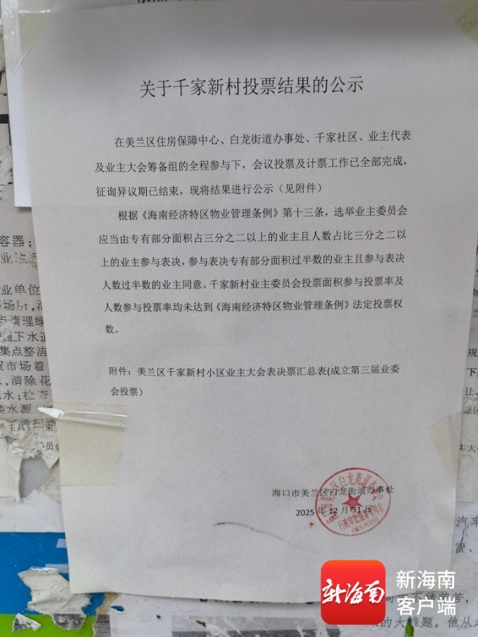 白龙路街道办事处工作人员则表示,已就千家新村业委会选举相关过程、争议焦点及办事处的履职依据,书面向美兰区政府相关部门提交了详细的情况说明。街道办事处称,预计近期美兰区住房和城乡建设管理部门将就此事给予业主正式答复。