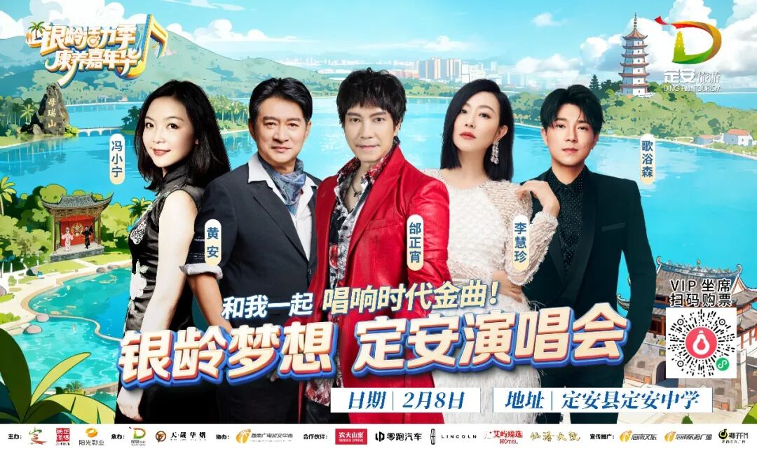 2月8日19:30-21:30,银龄梦想定安演唱会将在定安中学体育场温情开唱。邰正宵、黄安、冯小宁、李慧珍、歌浴森等华语乐坛实力唱将,将与本土银龄艺人联袂献艺,演绎《千纸鹤》《新鸳鸯蝴蝶梦》《小城故事》等经典金曲。