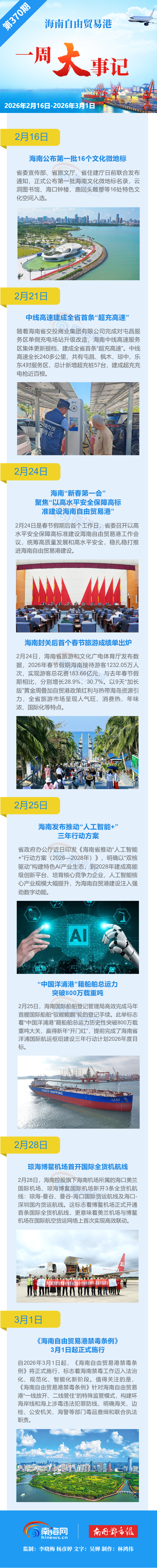 海南自贸港一周大事记 | 海南封关后首个春节旅游成绩单出炉