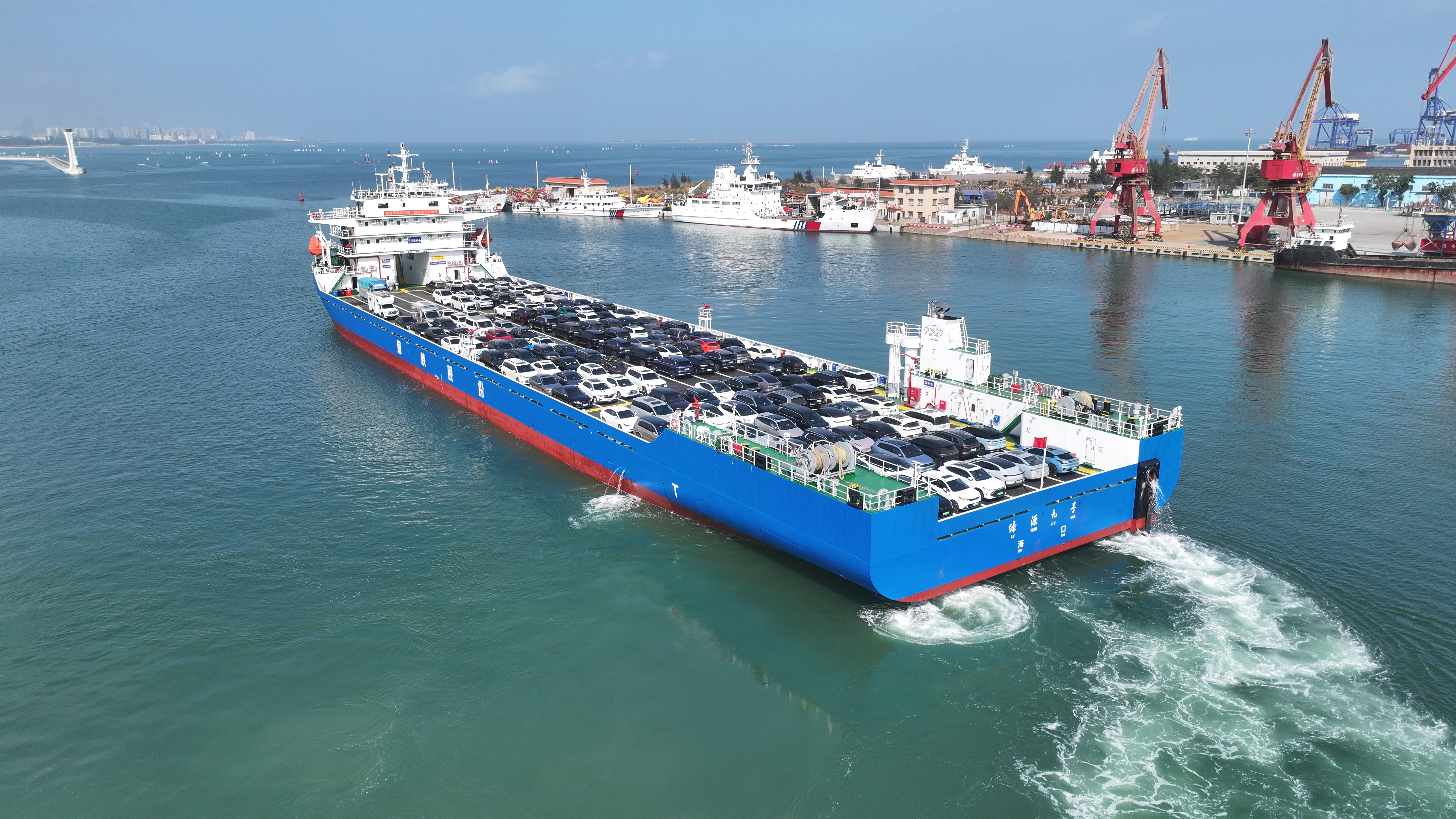 琼州海峡新能源车过海高效顺畅,快跟着记者体验车辆登船全过程