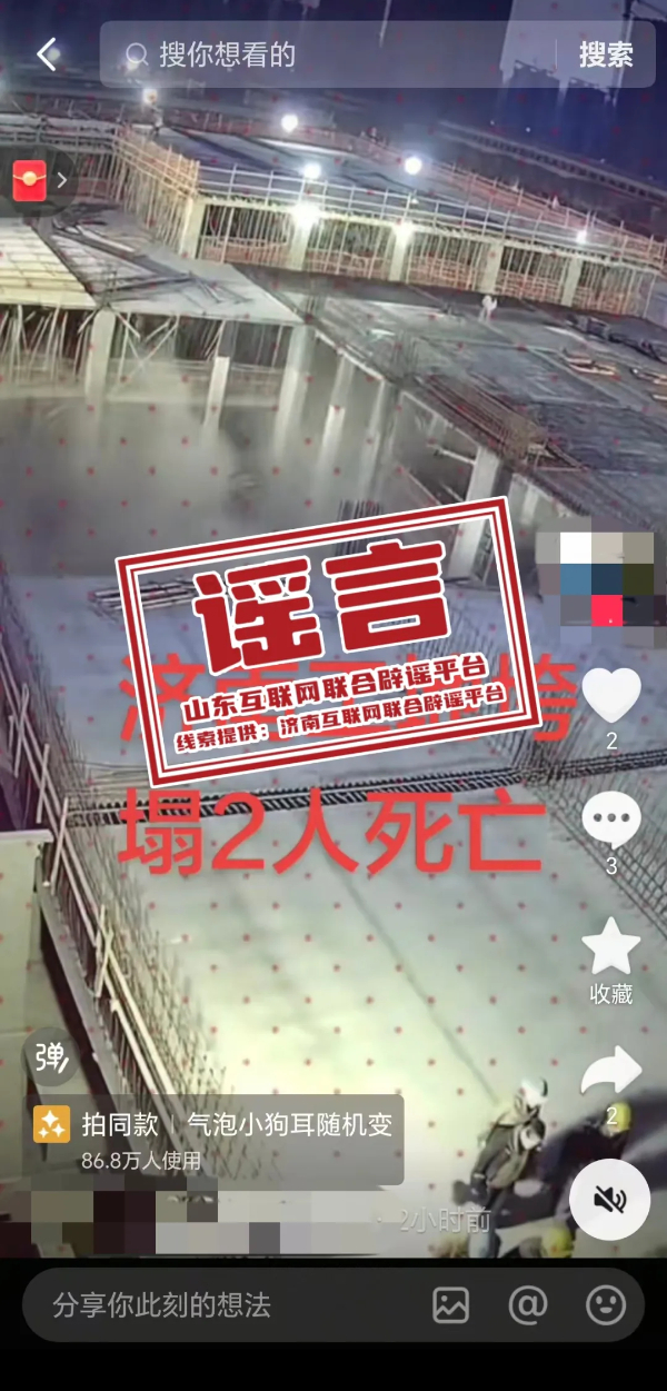 经核实,近日济南未发生工地垮塌死亡事件,该视频系利用人工智能技术生成的虚假信息。