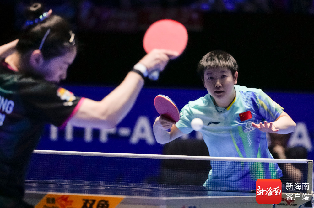 孙颖莎在比赛中回球。记者 李昊 摄