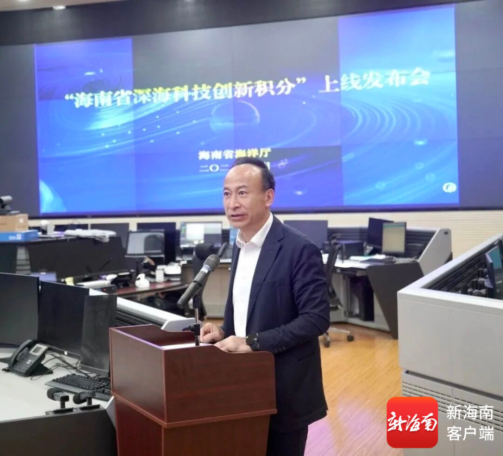 省海洋厅党组书记、厅长李东屿介绍发布会背景,阐述深海科创积分对产业发展的意义,并宣布系统正式上线。海南省海洋厅供图