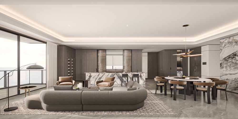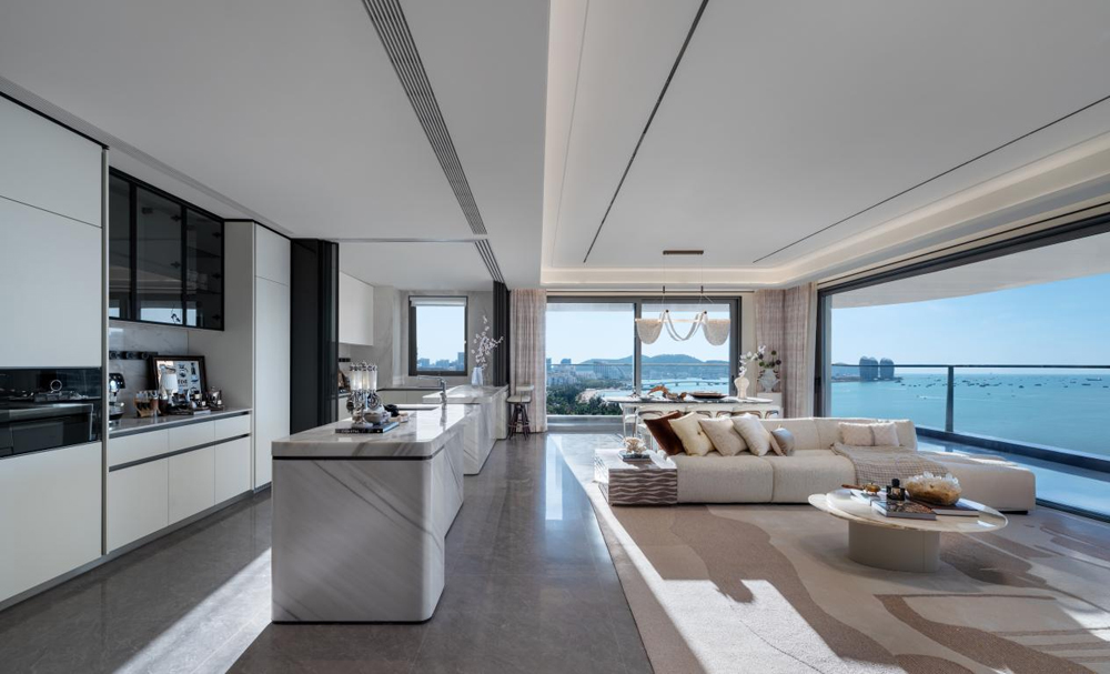 主打建筑面积约186-556平方米的一线海幕大平层及复式产品,确保极致的私密性与纯粹的圈层氛围。产品设计突破了传统户型思维,转向为多代家庭、商务社交、静谧独处等不同生活场景提供定制化空间解决方案。