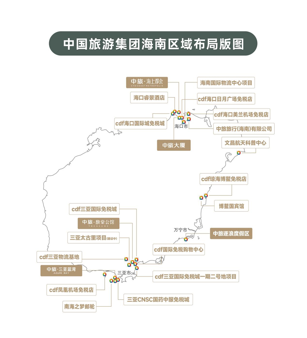中国旅游集团作为中国以旅游为主业的中央企业,总资产超2000亿元,作为集团核心业务板块,中旅投资践行“深耕海南、服务海南、建设海南”的承诺。通过“地产开发+运营型业务+服务型业务”一体两翼的业务布局,打造“三湾一港”(三亚湾、海棠湾、日月湾和新海港)海南城市业务布局,为服务国家开放新高地,著书央企时代担当。