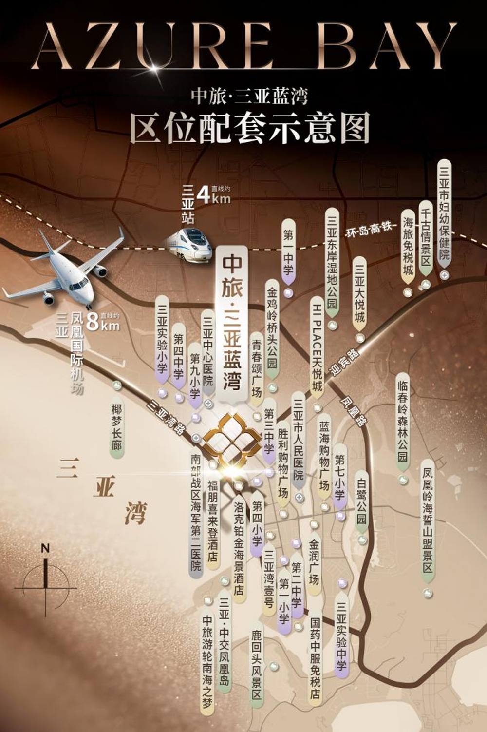 中旅·三亚蓝湾的价值独特性,在于其“双重占位”:一面背靠三亚迎宾路中央商务区(CBD),占据城市发展主轴与产业核心;一面直面三亚湾最宽阔海域,拥有无遮挡的一线海景。项目位于迎宾路与三亚湾路交汇处,既对接迎宾路中央商务区的城市繁华,又直面三亚湾约22公里椰梦长廊的自然景观,实现“城与海”资源的双重占有。