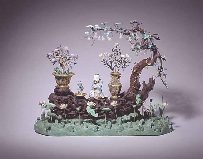 明清时期,建筑、染织、陶瓷、漆艺、金工、家具、雕刻等工艺领域,甚至达到了“图必有意,意必吉祥”的程度。故宫博物院藏清代像生盆景即是其中的重要代表。
