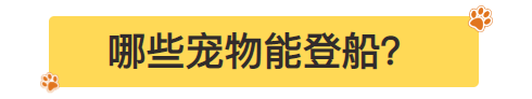 只有防护装备齐全、规范且处于有效使用状态(容器合格或牵引绳、嘴套、尿包均佩戴良好)的宠物,方可被允许随行登船。