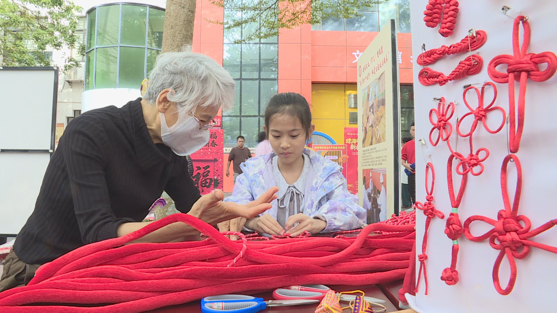 活动现场张灯结彩、热闹非凡。非遗知识问答、舞鲤鱼灯、舞龙、投壶、剪纸、苗绣鱼纹填色、中国结编织等趣味体验项目吸引市民踊跃参与,大家在亲手制作和互动中感受传统民俗的温度与魅力。省级非遗“东坡笠制作技艺”等项目传承人亲临现场,指尖翻飞间展示精湛技艺,娓娓道来手艺背后的历史渊源与民俗故事,让市民深入领略琼海本土非遗与春节习俗交融的深厚文化底蕴。