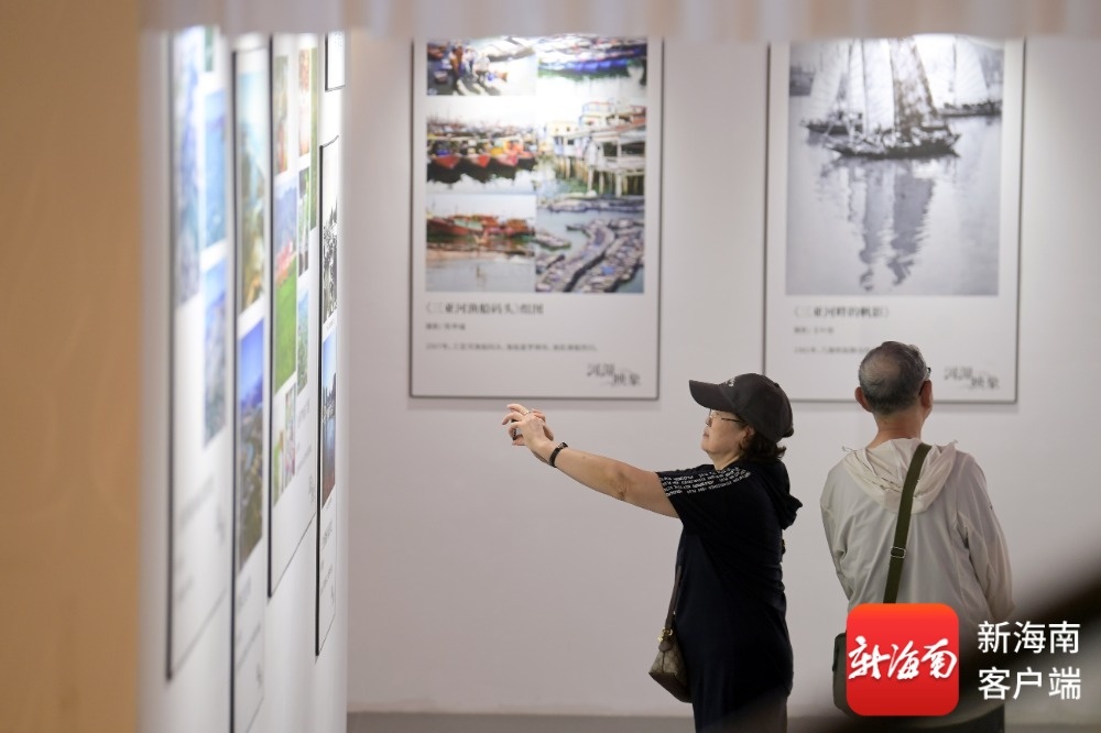 现场打造沉浸式观展场景,入口水纹主题地贴、动态视频播放,打破传统图片展的单一形式。同时,展览面向市民、游客、生态文化爱好者及琼南小环线自驾群体,通过互动打卡、线上传播等形式,让更多人感受三亚河流文明魅力。
