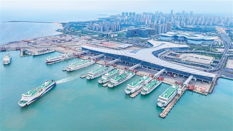 资料图:海口新海港汽车客货滚装码头,船只往来,一派繁忙。海南日报记者 张茂 摄