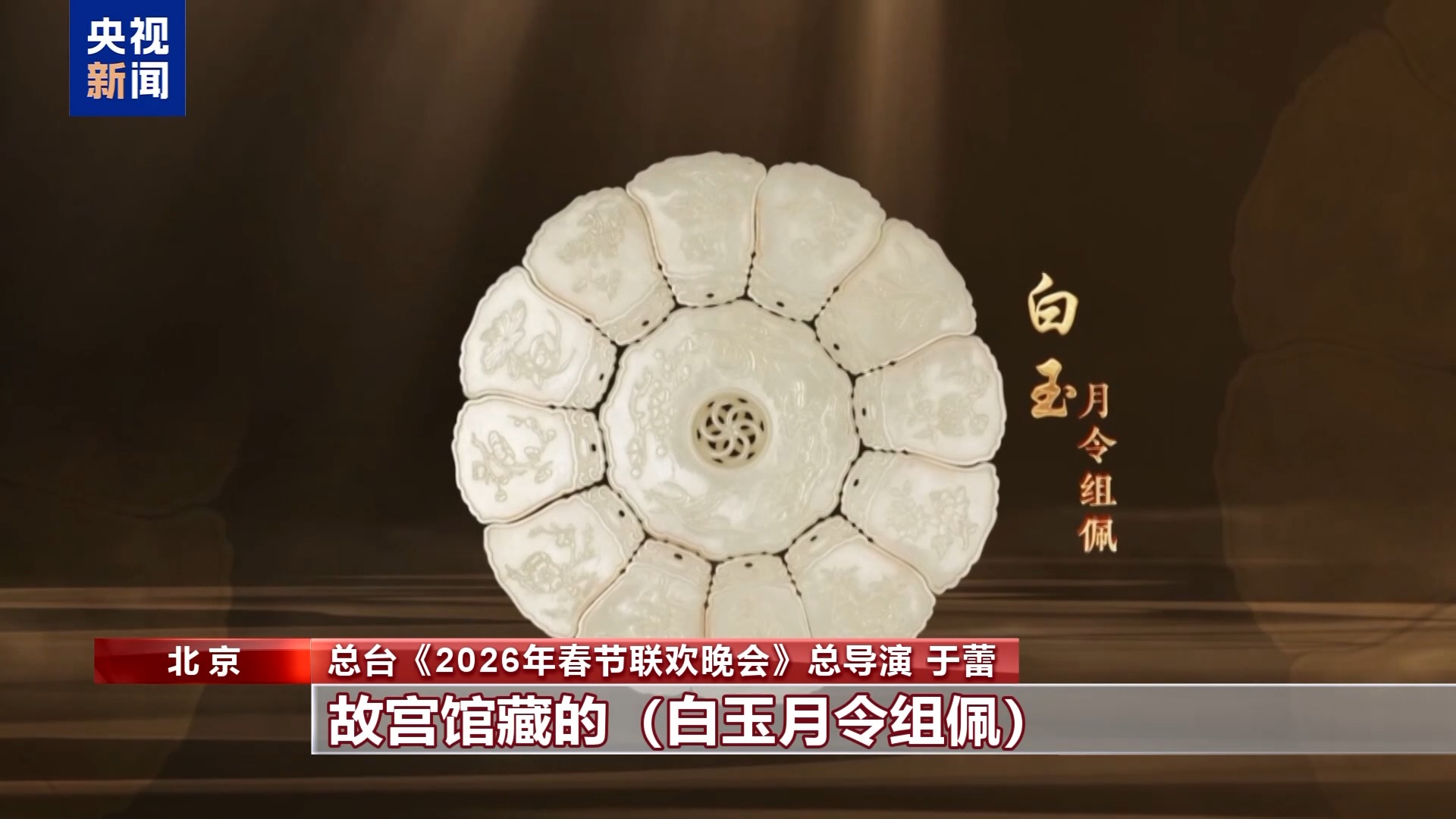 总台《2026年春节联欢晚会》总导演 于蕾:我们找来找去就找到了故宫馆藏的白玉月令组佩,它恰好是十二月花,每个花有一个花语,正面有花,背面有文字,非常美的一件国宝。我们就以它为串联意象,然后这个白玉月令组佩打开,串联着十二月花神的亮相,它的文化意象就有个“核”,就统合在一起了。