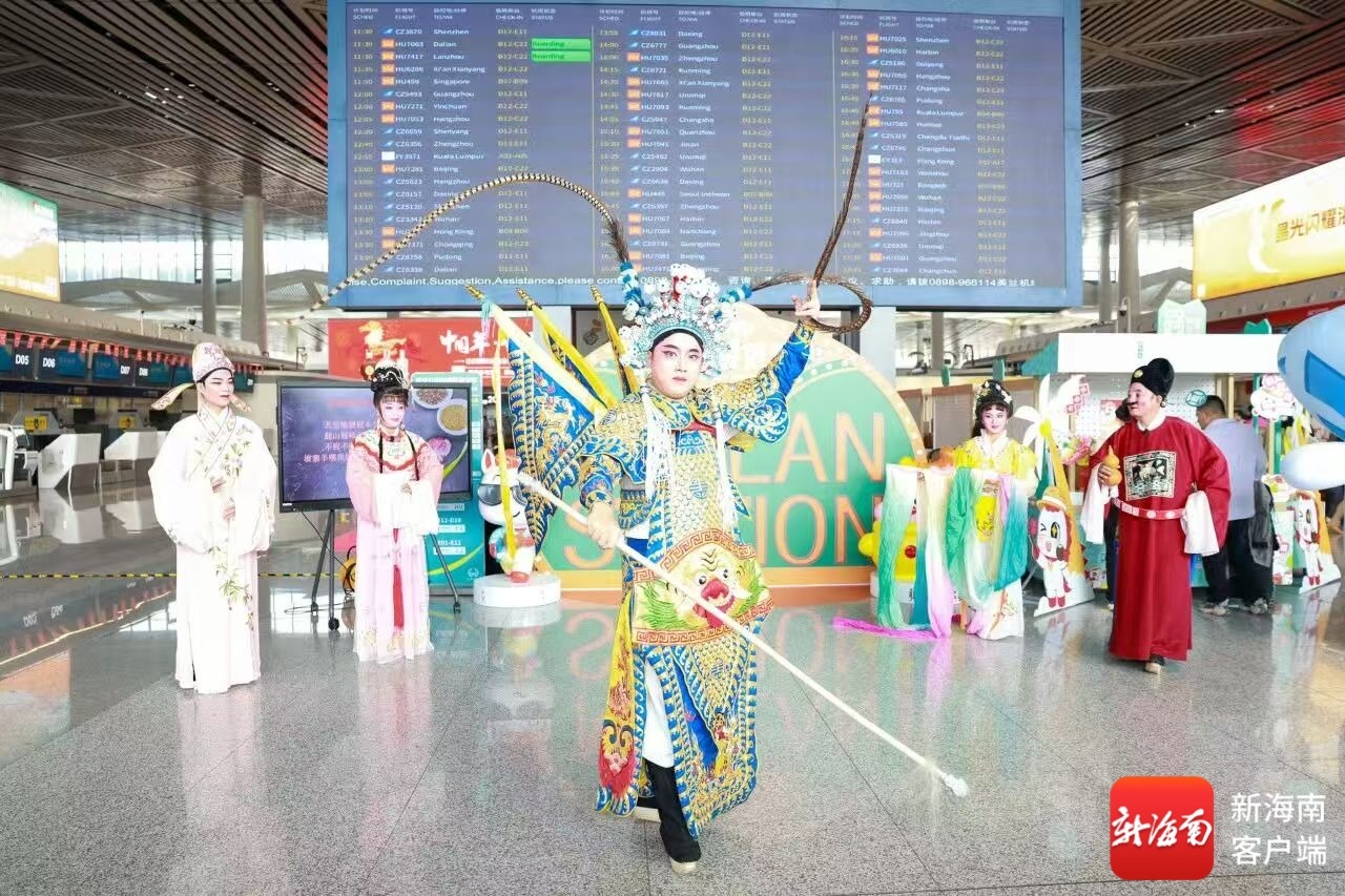 海口美兰机场将琼剧搬入候机楼,让旅客在候机之余聆听本土戏曲魅力,还联动东坡文化码头,将东坡文化融入新春活动,开展NPC快闪互动演艺、新春贺岁大巡游等特色体验;舞龙舞狮、手写春联、福字拓印等传统民俗活动轮番登场,让春节的热闹氛围洋溢在航站楼各个角落。