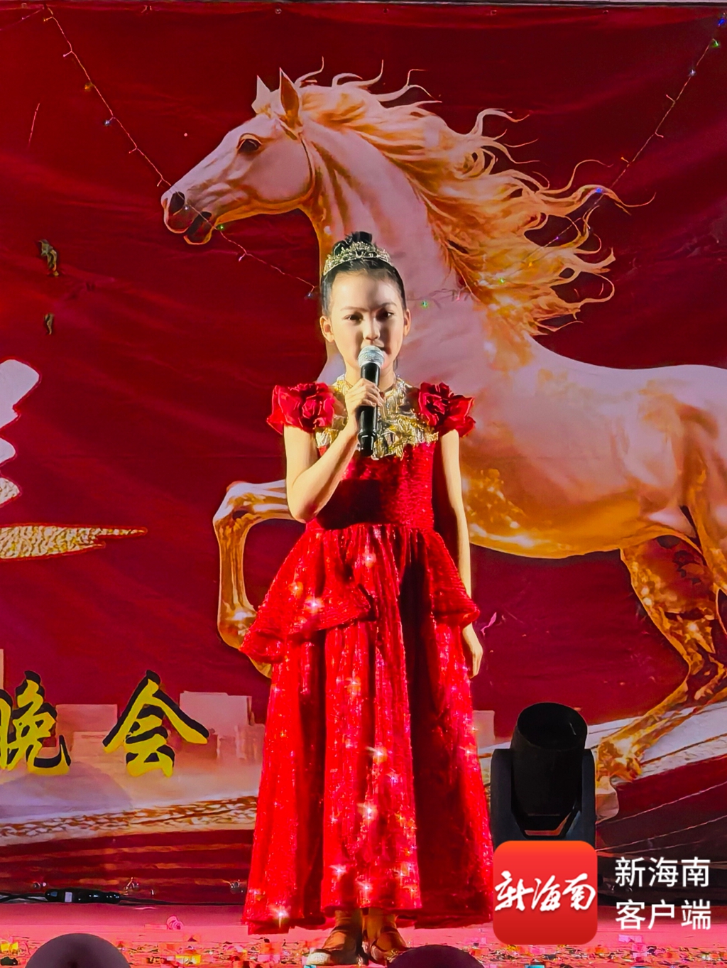 晚会进行到一半,9岁的柳雨佳走上舞台。小姑娘虽然在海口上学,但从小听爸爸讲村里的故事,对这片土地熟得很。她用稚嫩的童声为乡亲们送上新春祝福,台下的大人们笑着鼓掌。有人开玩笑喊了一嗓子:“过几年,这个舞台或许就交给你啦!”