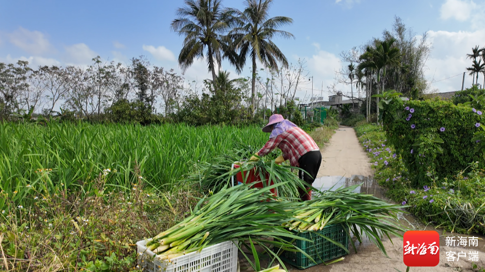 采收后进行清洗、切叶、装框,打包后将发往海口周边农贸市场和餐馆。记者 郑光平 摄