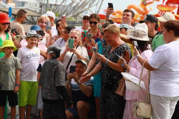 传统与现代的交融成为今年活动的一大亮点。大章鱼舞台上,穿戴着狮服的机器狗与机器人随着节拍灵动起舞,将非遗元素与前沿科技巧妙结合,引得现场孩子们阵阵欢呼,争相与“萌宠”互动合影。