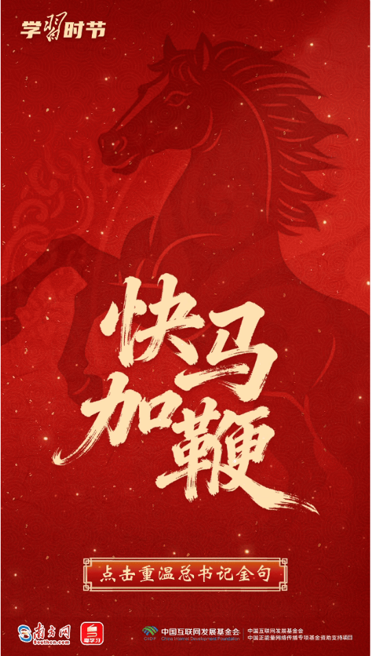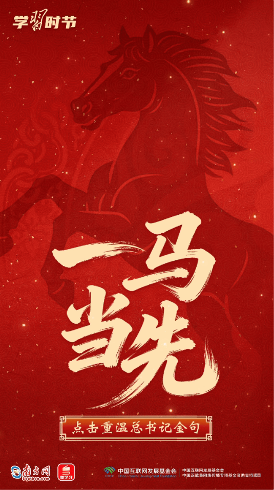 习近平总书记多次用“龙马精神”“马到功成”“一马当先”等耳熟能详的成语,向全国各族人民送上最美好的新春祝福,寄予奋进向上的殷殷嘱托。马年新春,来接收总书记的祝福和寄语,一起策马扬鞭,奔向更美好的明天!