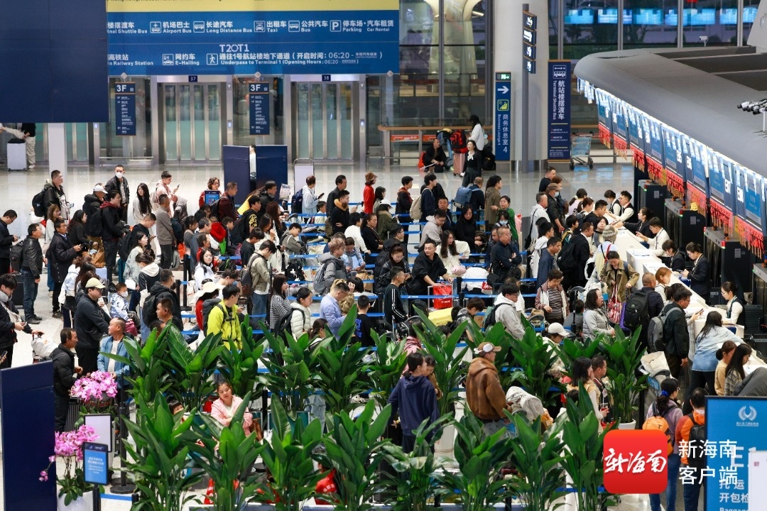 海口美兰机场航站楼内人潮涌动。海口美兰机场供图