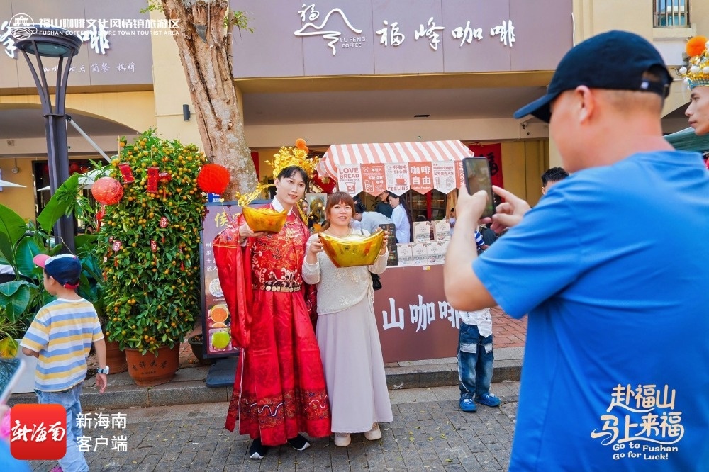 本次春节活动中,福山咖啡文化风情镇跳出“观景点+购物店”的传统模式,将百年咖啡文化与新春年俗深度绑定,打造出一批可参与、可互动、可传播的沉浸式消费场景。“集五福全民任务”串联起咖啡品鉴、非遗体验等打卡点,让游客在游戏中感受文化魅力;“炭火焙炒咖啡豆体验”让亲子家庭亲手参与咖啡制作,解锁“从种子到杯子”的完整体验;“马上有好市” 创意市集汇集咖啡文创、本土小吃,延伸消费链条。