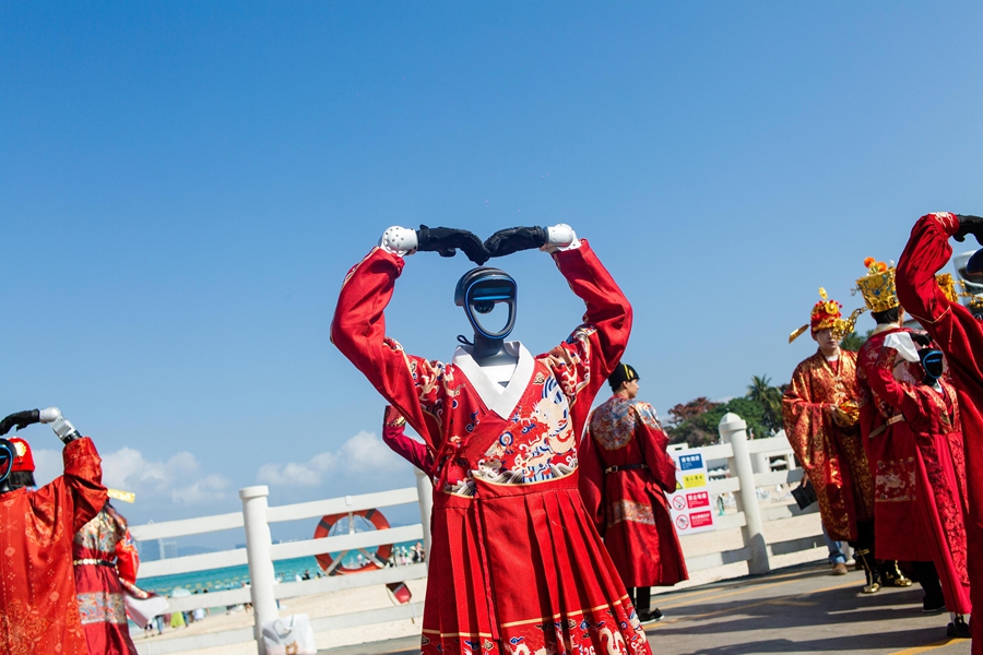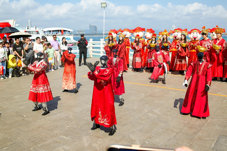 为满足游客全时段、多元化的度假需求,景区以“初五上岛,财运‘马’到”为主题,打造了覆盖全天的活动体系,设置“财运登陆”“好运续场”“奇遇彩蛋”三大板块,从清晨码头的启动仪式,到贯穿全天的全岛随机送福,再到晚间IPK蜈支洲沙滩餐酒吧的主题派对,6台机器人全程参与,实现了从日间畅玩到夜间沉浸的全时段年味覆盖,也填补了景区夜间科技互动体验的空白。同时,景区持续深化春节服务保障举措,启用双码头协同运行模式,新增2艘高速客船扩容600个客位,增设夜间航班打通全天候游玩通道;排队区域设置暖心服务台,免费提供饮品补给与互动演出,以机器人趣味互动为补充,多举措缓解游客等候焦虑,全力保障游客安心畅玩。