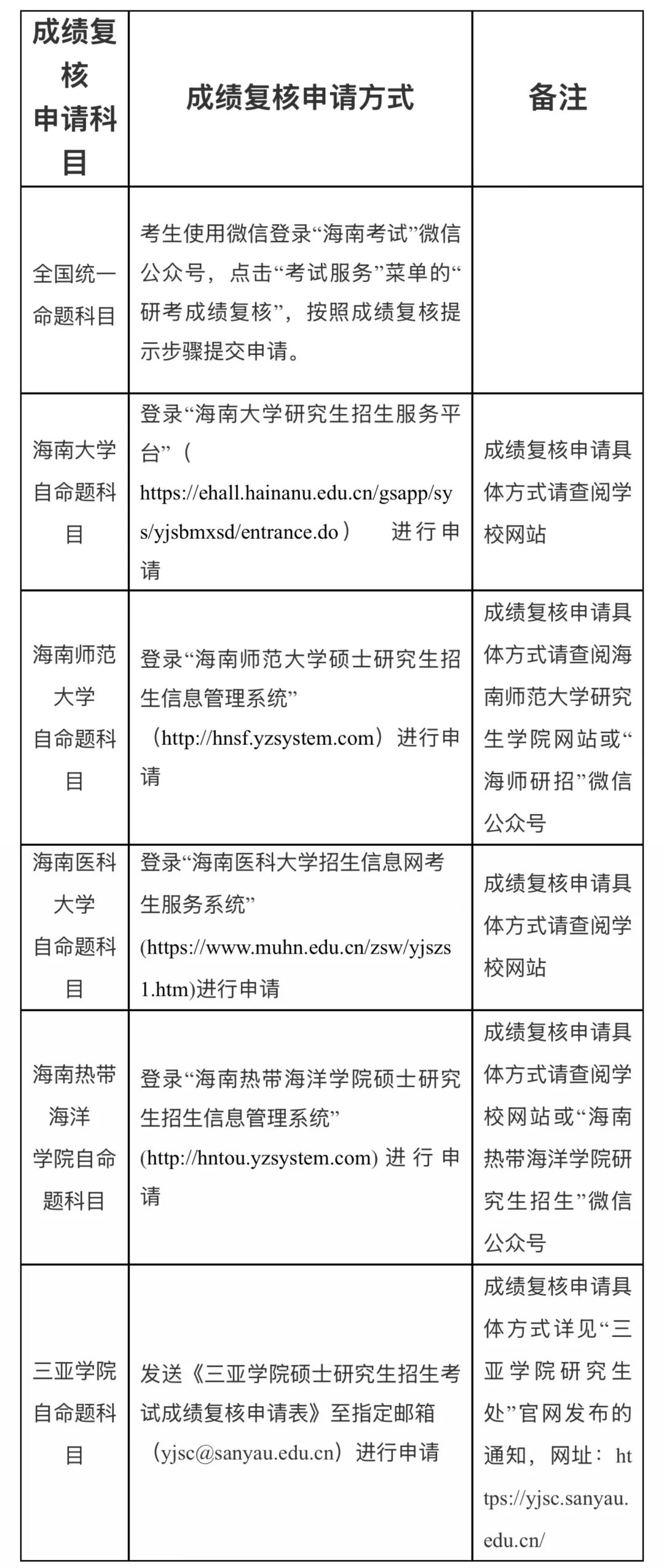 附:海南省2026年全国硕士研究生招生考试(初试)成绩复核申请方式