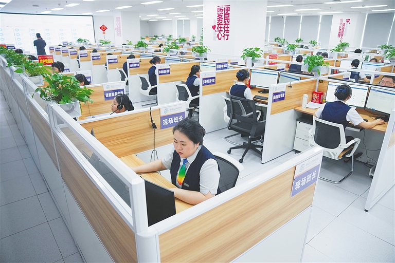 在海南省12345热线中心,工作人员在线上办理企业群众诉求。海南日报全媒体记者 王程龙 摄