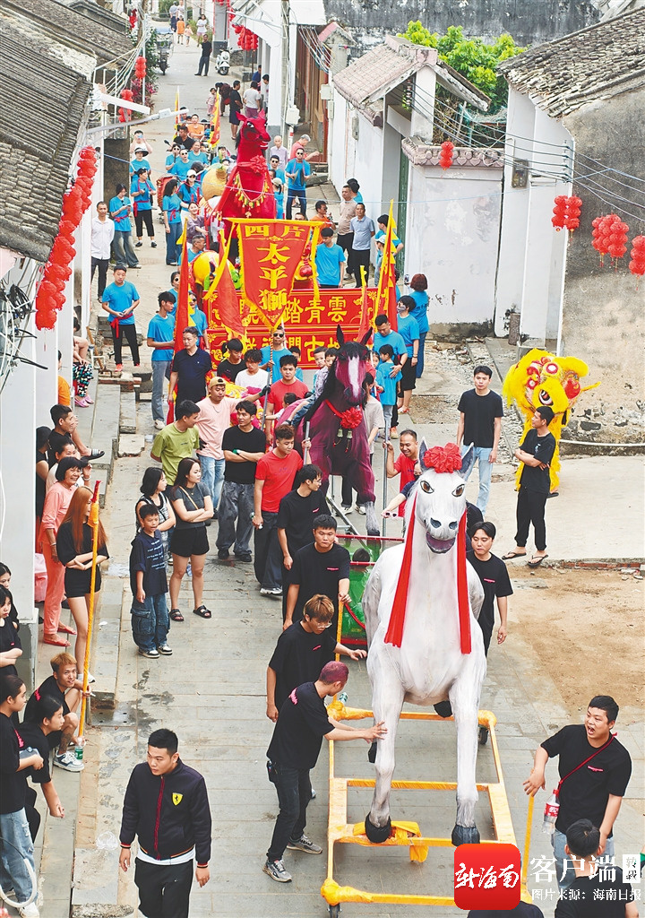 海南日报那大3月3日电(海南日报全媒体记者吴心怡)3月3日上午,儋州市中和古镇举行闹元宵活动,该镇各个片区组成的舞龙舞狮表演队伍走街串巷,挨家挨户送上元宵节祝福。