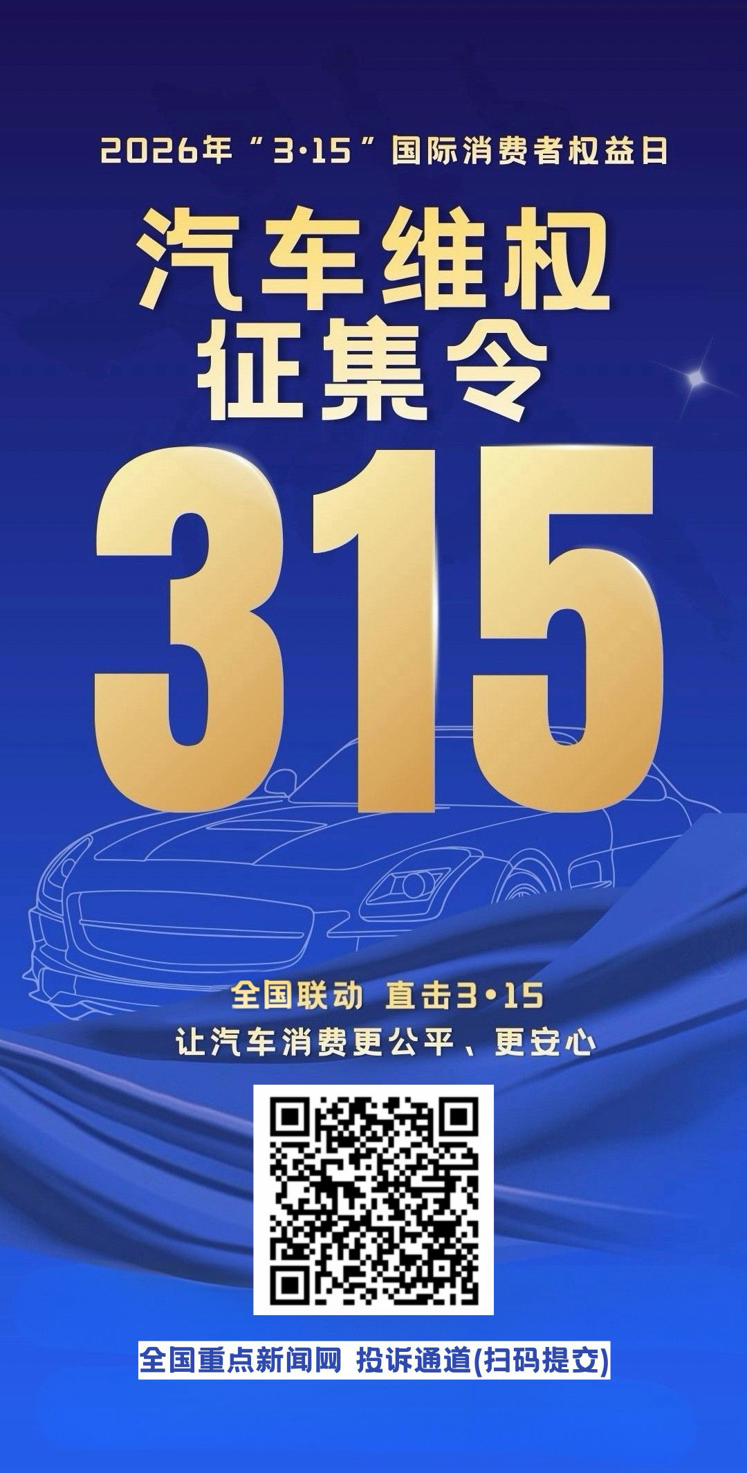 “3·15”国际消费者权益日临近,为积极响应2026年全国消协组织“提升消费品质”维权年主题,切实筑牢广大汽车消费者的权益防线,第1眼TV-华龙网、四川新闻网、东方网、大江网、纵览新闻、南海网、中国吉林网、东北网、三秦网等全国重点新闻网,携手各平台新闻App及新媒体矩阵,组建全媒体融合传播集群,正式发布315汽车维权征集令,启动“汽车维权直通车”专项行动,面向全国公开征集汽车消费投诉线索,助力揭露行业乱象、优化消费环境、提升消费体验。