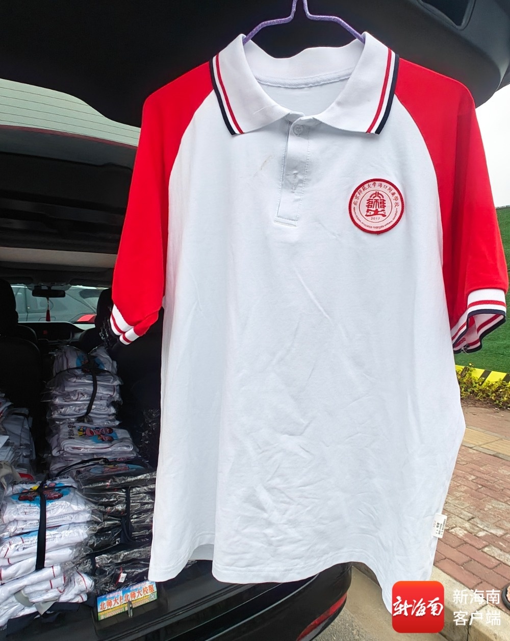 连日走访中,记者在海口市滨海第九小学、五源河学校、第一中学、海南华侨中学等多所学校周边发现,印有附近校徽的“盗版校服”,在商行、文具店随处可见;海口市美兰区美庄路上,流动摊贩开着私家车售卖印有“北京师范大学海口附属学校”校徽的校服,部分衣服无吊牌、无生产企业信息,凑近还能闻到一股异味;海口和谐路一家校服专营店,大量疑似“盗版校服”公开售卖。