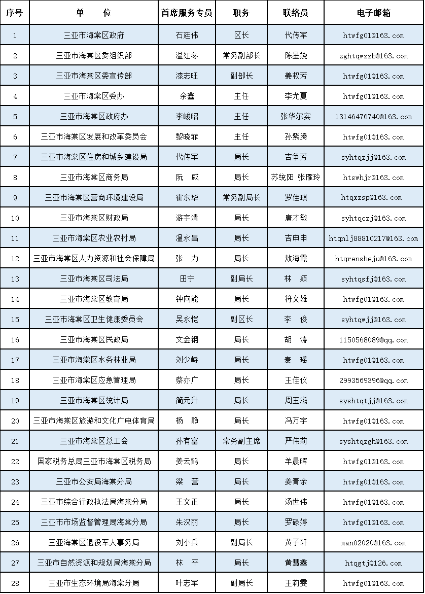 海棠区28位企业首席服务专员名单。
