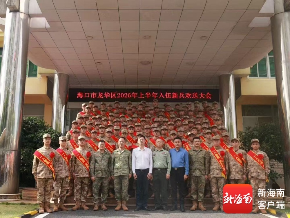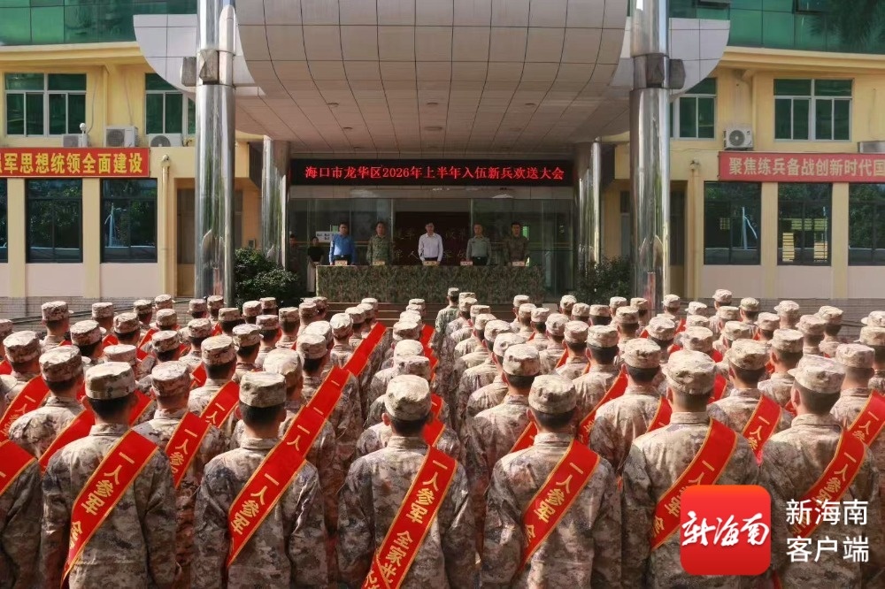 南海网、新海南客户端3月17日消息(记者 程小丹 特约记者 萧海山)3月17日下午,海口市龙华区2026年上半年入伍新兵欢送大会在龙华区人民武装部举行。90余名身着崭新迷彩服的有志青年精神抖擞、英姿勃发,胸前的光荣花与青春脸庞交相辉映,在春日暖阳下熠熠生辉。他们即将带着家乡人民的殷切期望,奔赴祖国大江南北的座座军营,开启保家卫国的光荣征程。