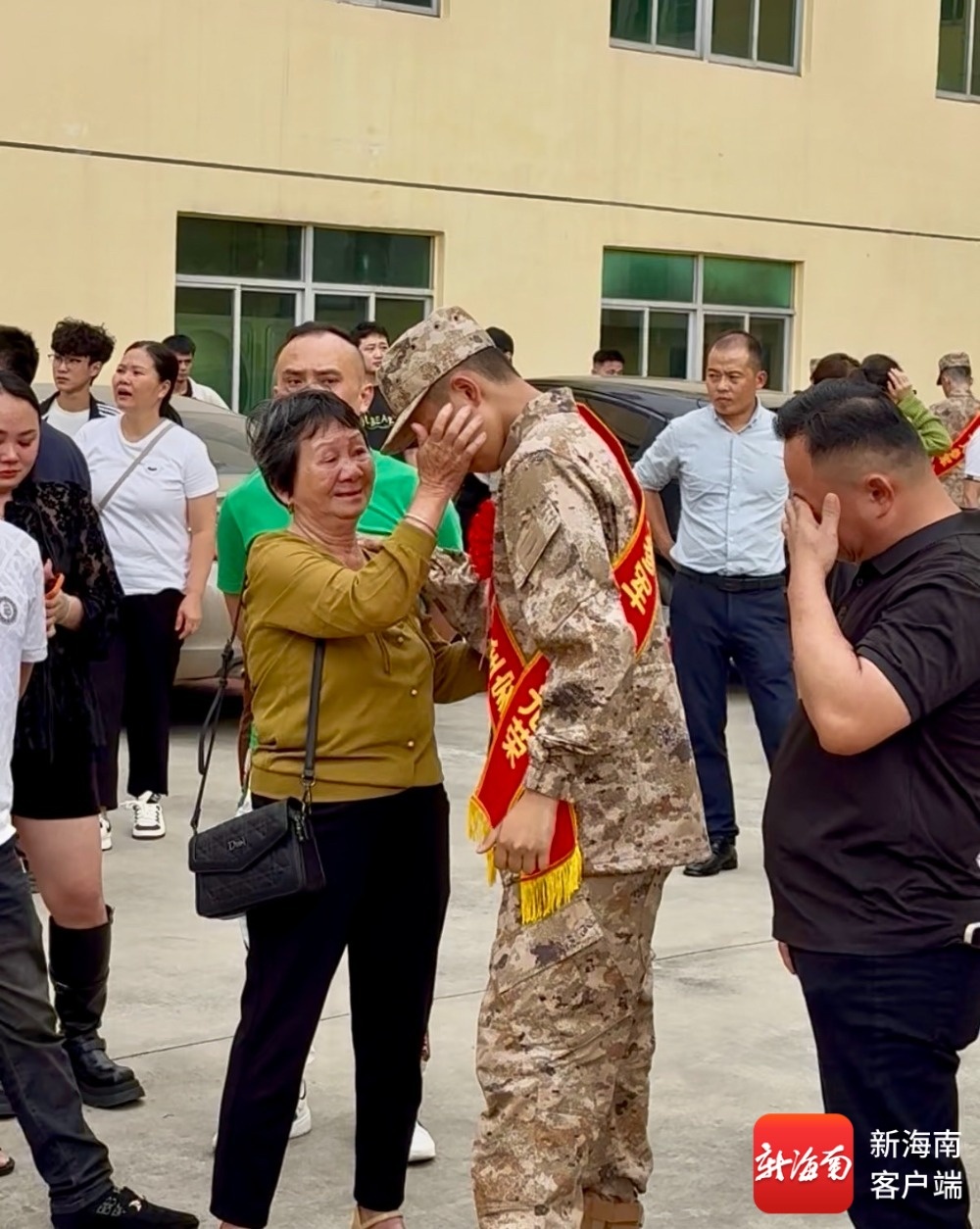 欢送现场,新兵家长为孩子擦拭眼角的泪水,眼神中充满不舍。记者 程小丹 摄