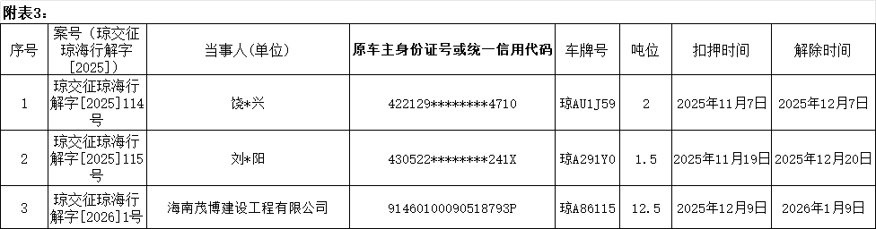 因你(单位)涉嫌欠缴机动车辆通行附加费,本机关依法对你(单位)采取了行政强制措施。依照《中华人民共和国行政强制法》第二十八条第一款第四项的规定,本机关决定解除该行政强制措施(详见附表3)