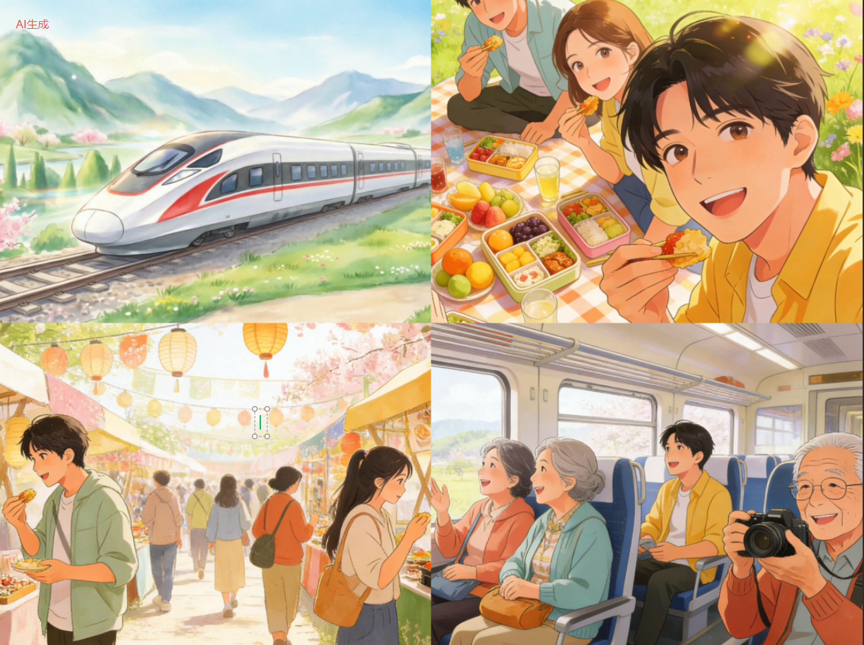 精准贴心服务,打造舒适出行新体验。从 “赶路出行” 到 “享受旅途”,“高铁 + 文旅” 的深度融合,不仅提升了交通服务水平,更让旅游品质全面升级。为满足不同群体的个性化出行需求,铁路部门精准发力、量体裁衣,推出多样化、定制化的旅游专列服务。面对老年群体,铁路部门有针对性地配置适老化产品,利用个性化、定制化的旅游专列满足老年游客一次出行、多景点游览的愿望,迎合了“银发族”的需求,更好适应大众特色化、多层次市场契合点,绘就一幅“处处是景、时时可享”的舒适春景图。