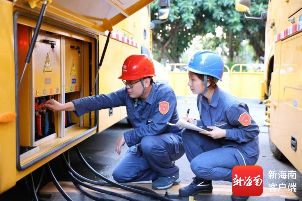 南方电网海南电网公司博鳌亚洲论坛年会保供电团队正在检查应急电源车接入情况。通讯员 袁卅 摄