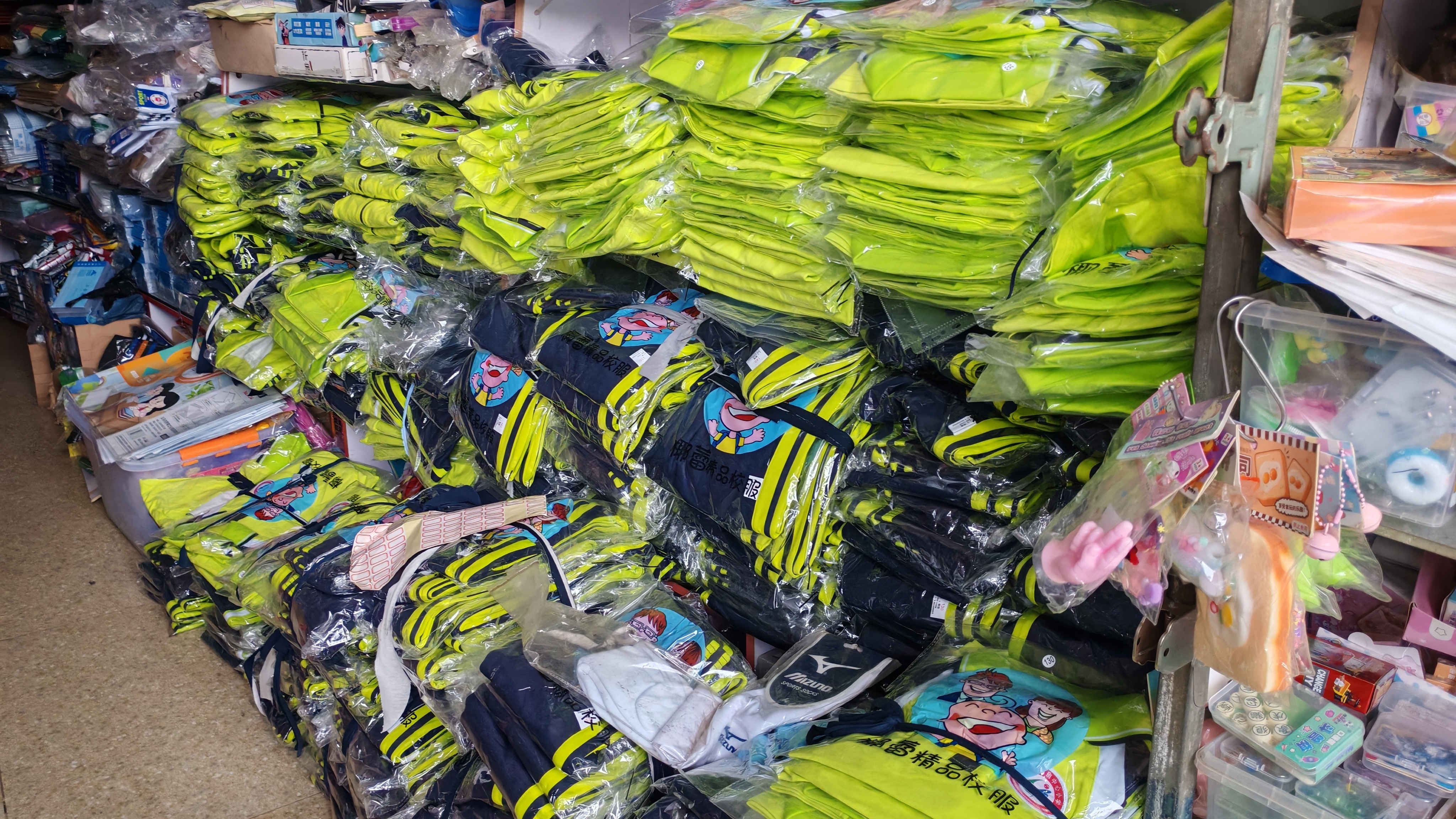 资料图:海口灵山镇中心学校周边商铺售卖非中标企业生产的“盗版校服”。记者 叶长文 摄