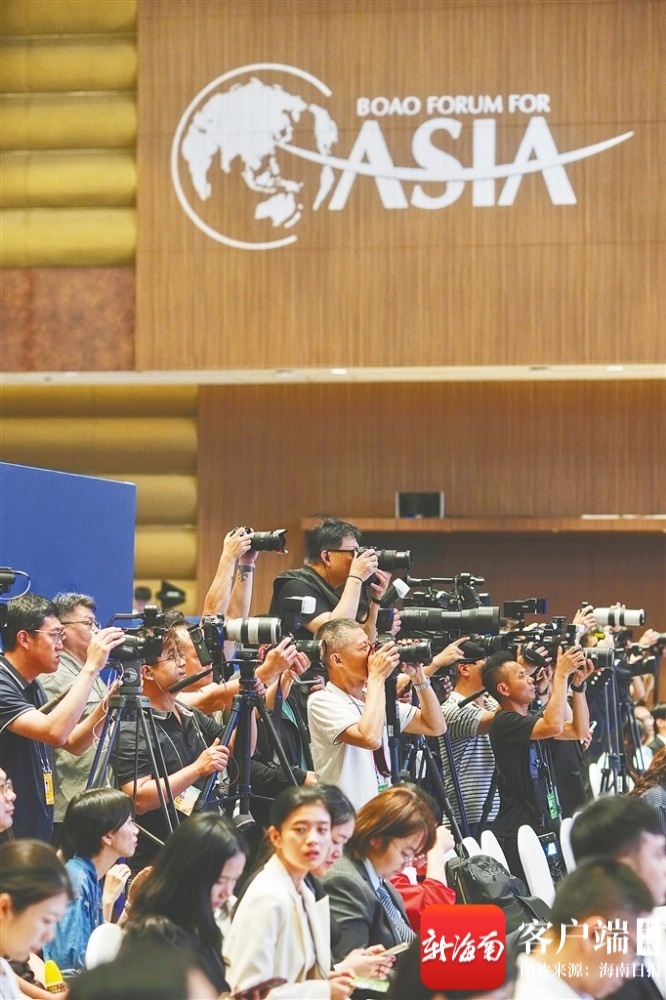 博鳌亚洲论坛2026年年会全球自由贸易港发展论坛受到众多媒体关注。海南日报全媒体记者 封烁 摄