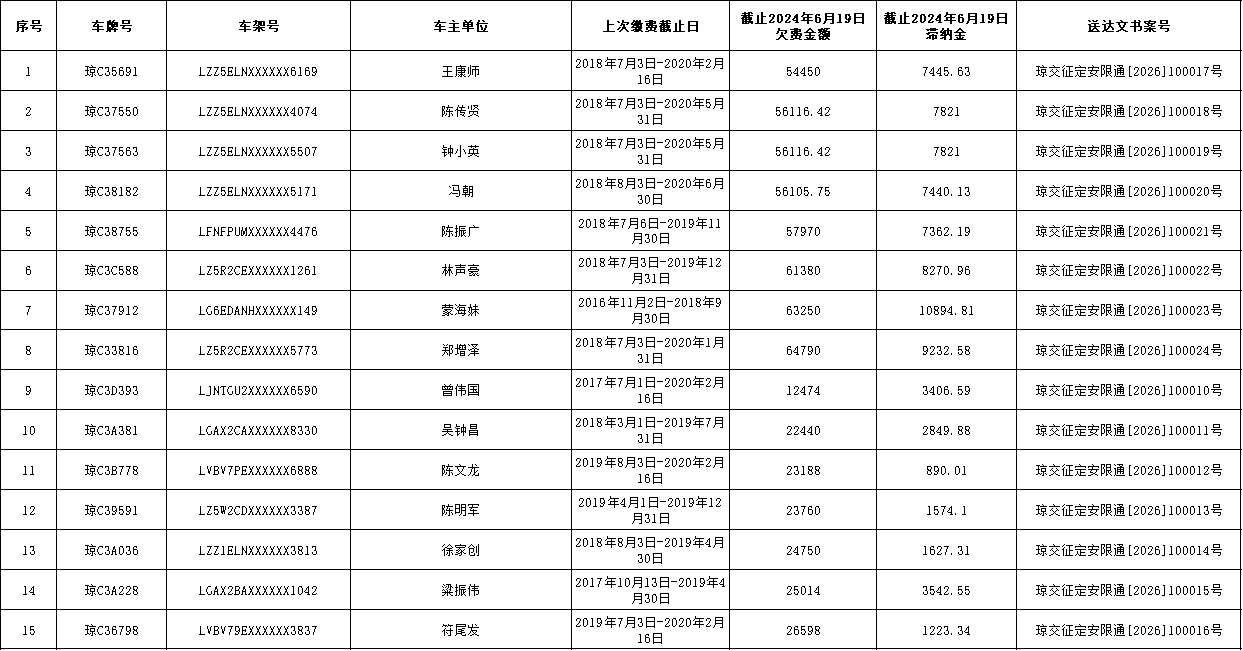 注:以上车辆欠费信息解释权归海南省交通规费征稽局定安分局
