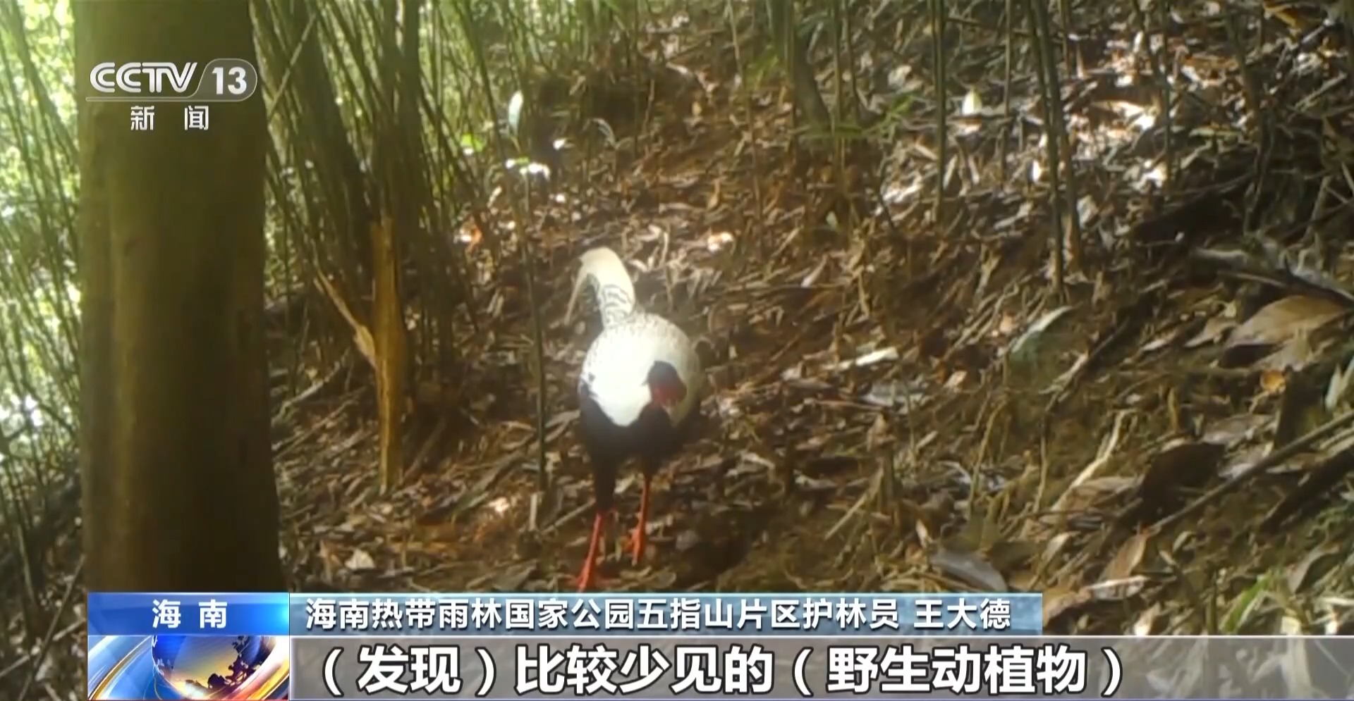 海南热带雨林国家公园五指山片区护林员 王大德:我们一个月要巡护22天以上,最少要三个人。在巡护中发现比较少见的野生动植物,我们一般会拍照上传到监测群里。