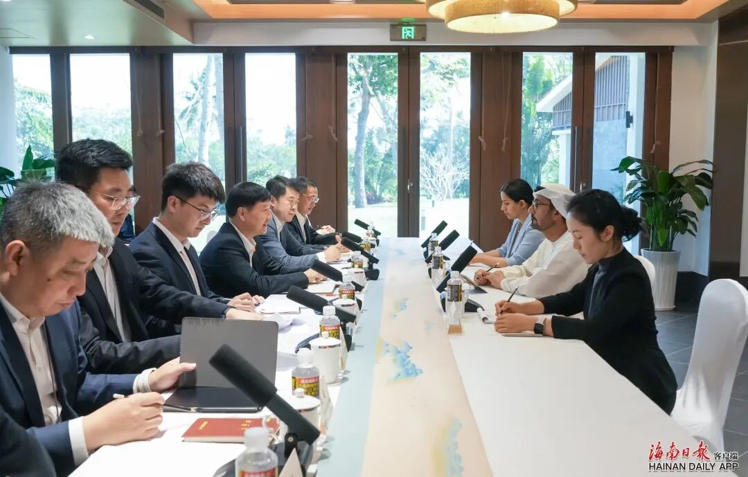刘小明对哈马迪一行的到来表示欢迎,并介绍了海南自由贸易港建设进展。他表示,过去一年,海南与阿联酋在高层互访、农业种业、航运港口、园区合作、经贸会展等方面开展了一系列卓有成效的友好交流与务实合作。希望阿联酋与海南深化经贸领域务实合作,推动更多阿联酋的自贸区/经济区与海南建立全球自贸区(港)伙伴关系,并组织经贸部门、商协会、企业来海南考察、参加中国国际消费品博览会;深化农业种业合作,推动椰枣种苗引进、种质资源保护利用、新品种培育、病虫害防控等方面合作;加强青少年交流,共同举办青少年研学等活动;深化旅游合作、推动建立友好城市关系,持续筑牢民心相通和经济发展根基。