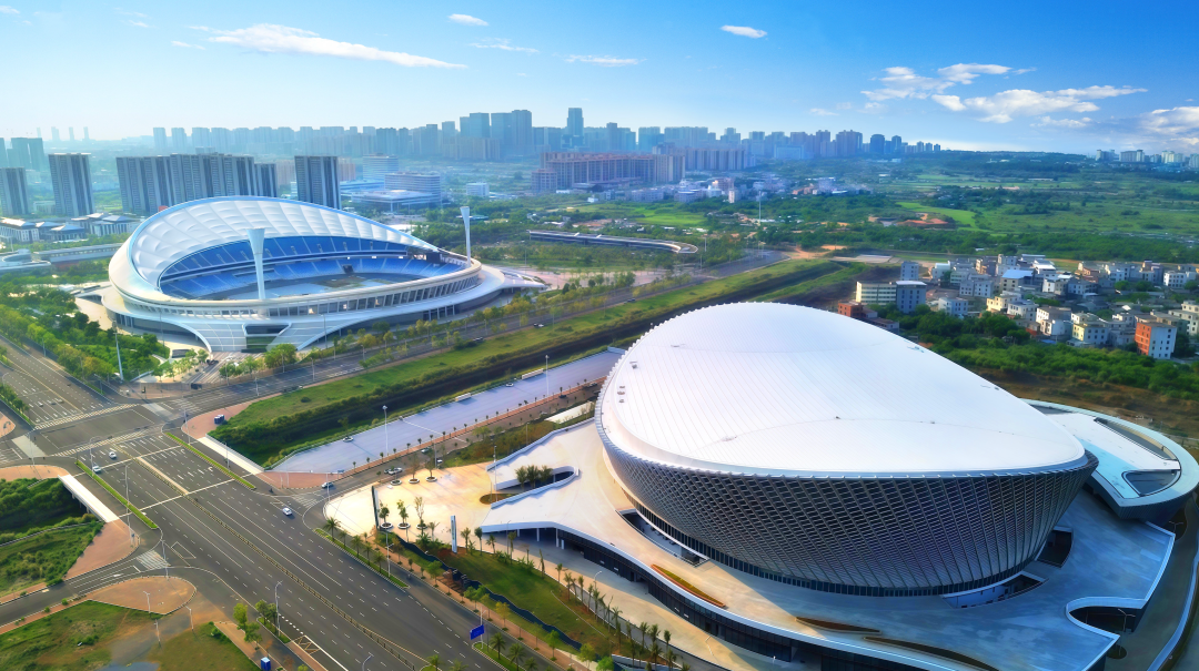 外形酷似“船型屋”,与五源河体育场形成片区体育赛事中心,进一步增强海口举办国际、国内大赛的能力。