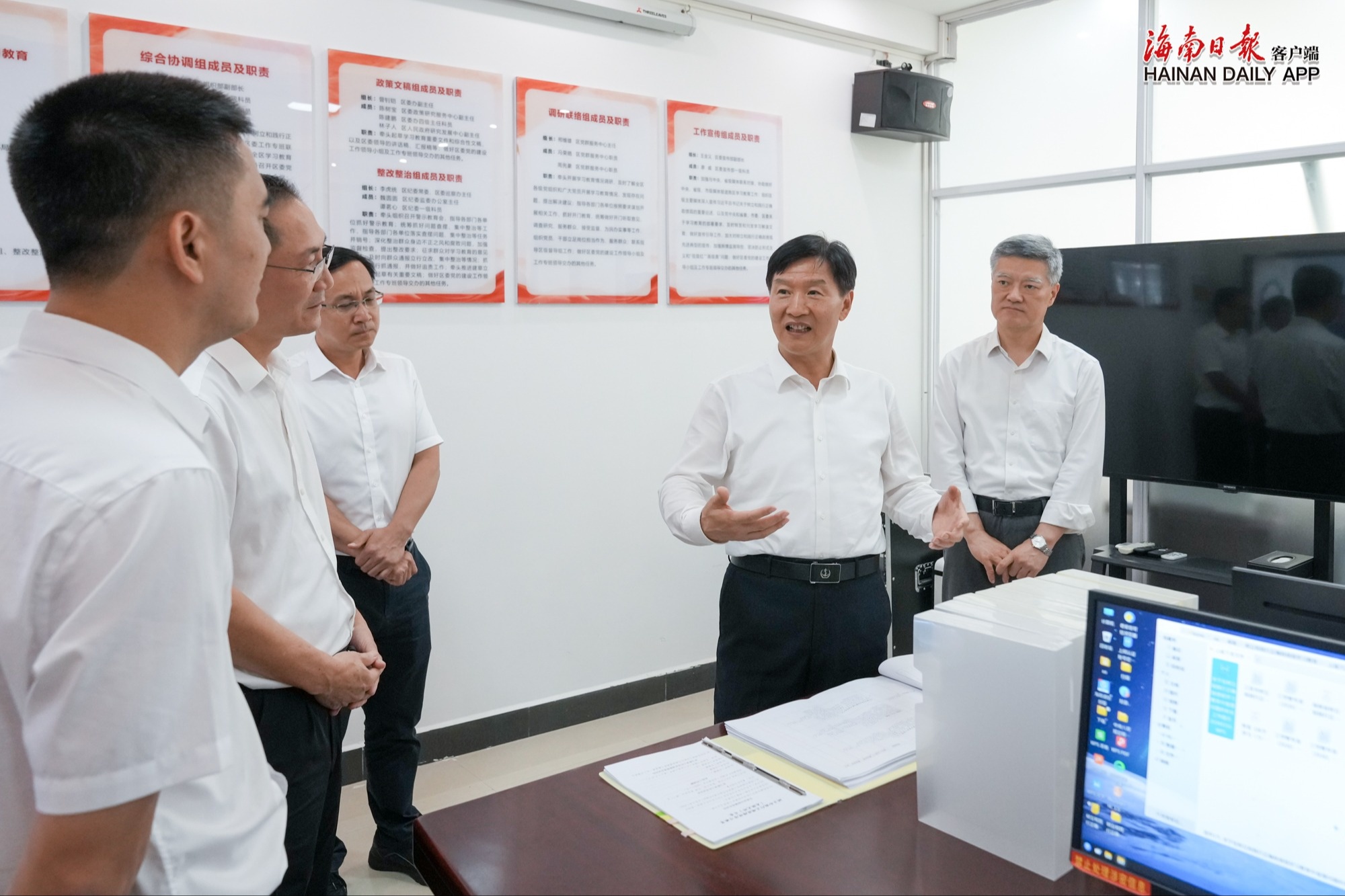 刘小明来到三亚市吉阳区委树立和践行正确政绩观学习教育工作专班,以“四不两直”方式检查吉阳区学习教育开展情况,随后主持召开座谈会,听取三亚市开展学习教育工作汇报。