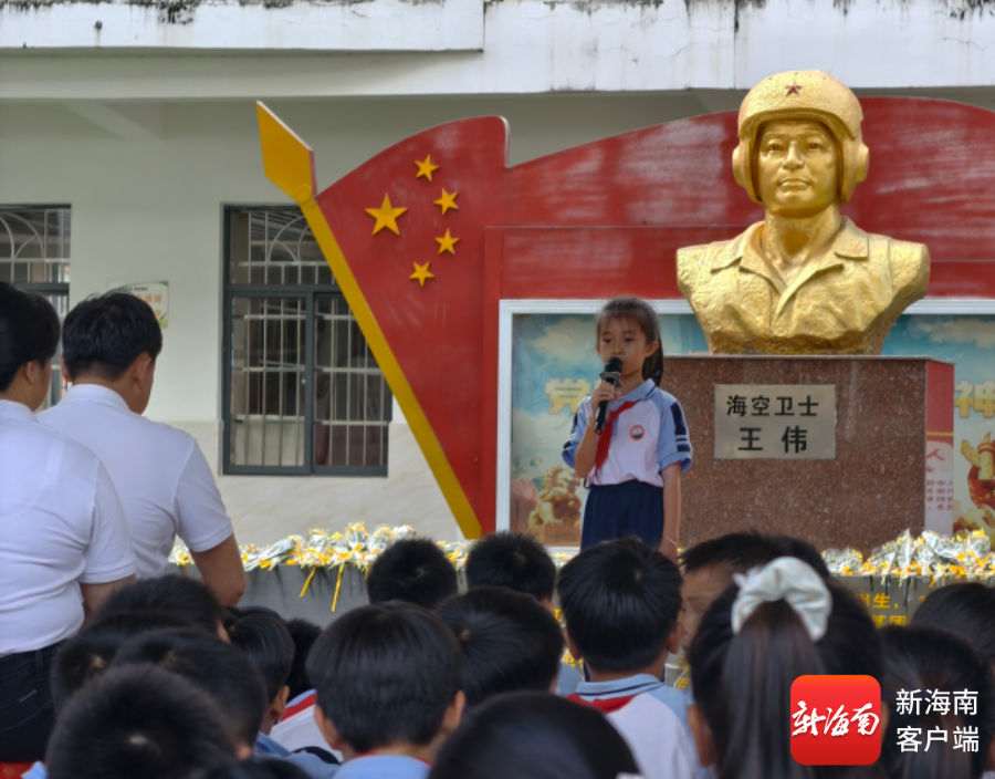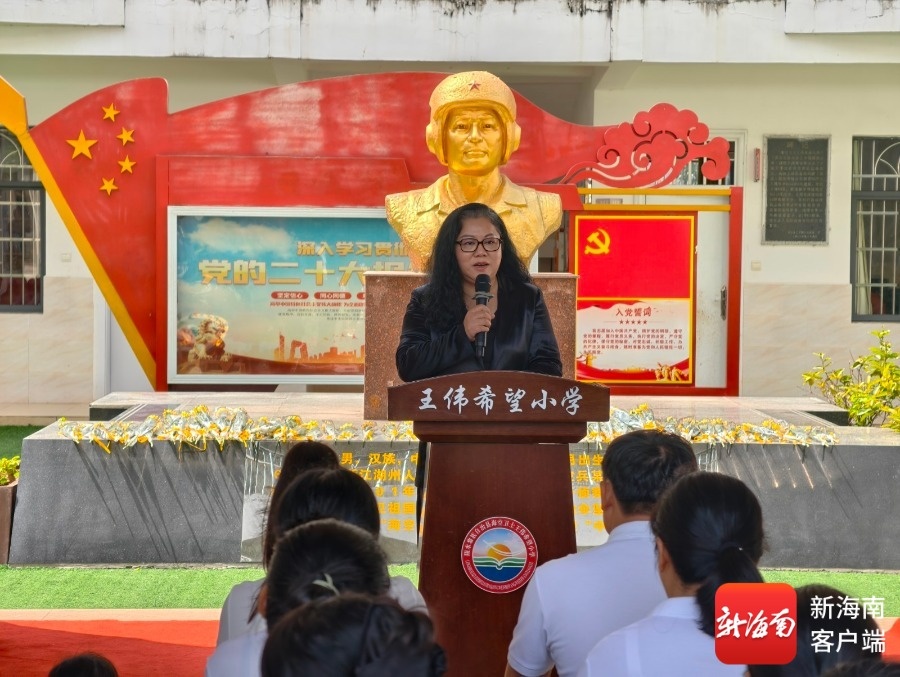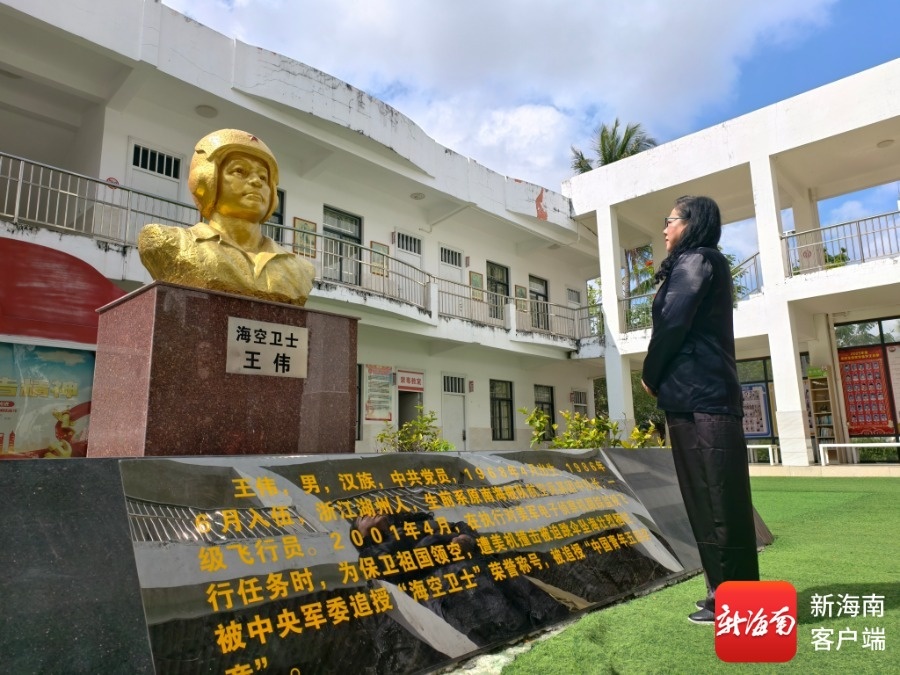 3月30日上午,阮国琴去往陵水,为海空卫士王伟希望小学的孩子们发放奖学金。汽车在东线高速飞驰,车窗外的天空是那么蓝,车厢里的阮国琴,是那么深情地回忆王伟。