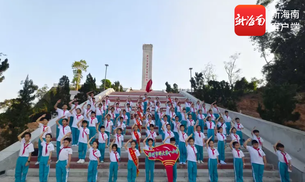 儋州市两院小学在儋州市人民英雄纪念碑举行清明祭英烈活动。学校供图